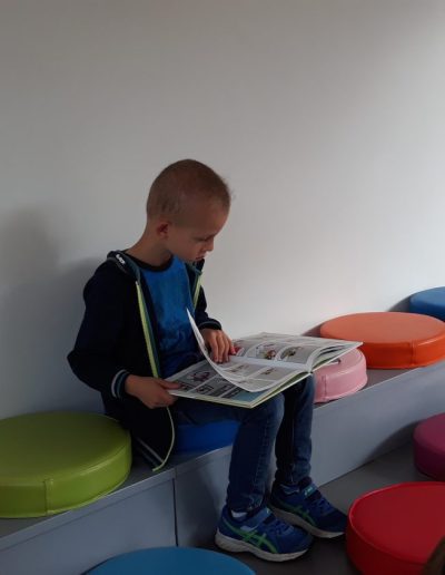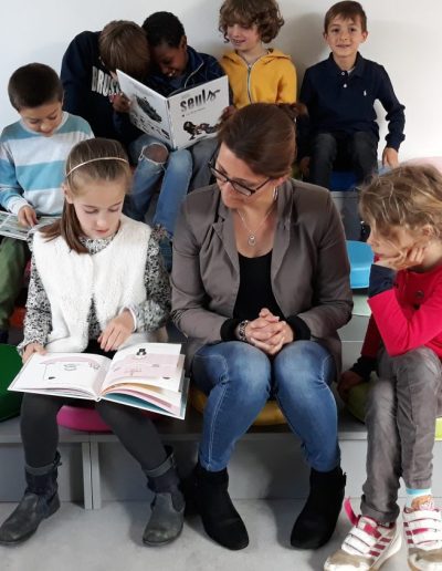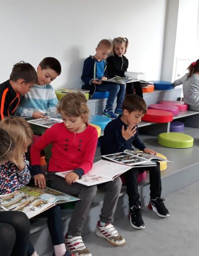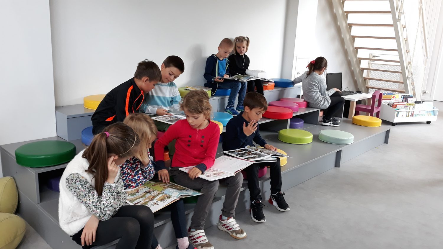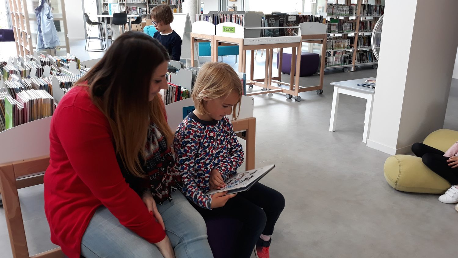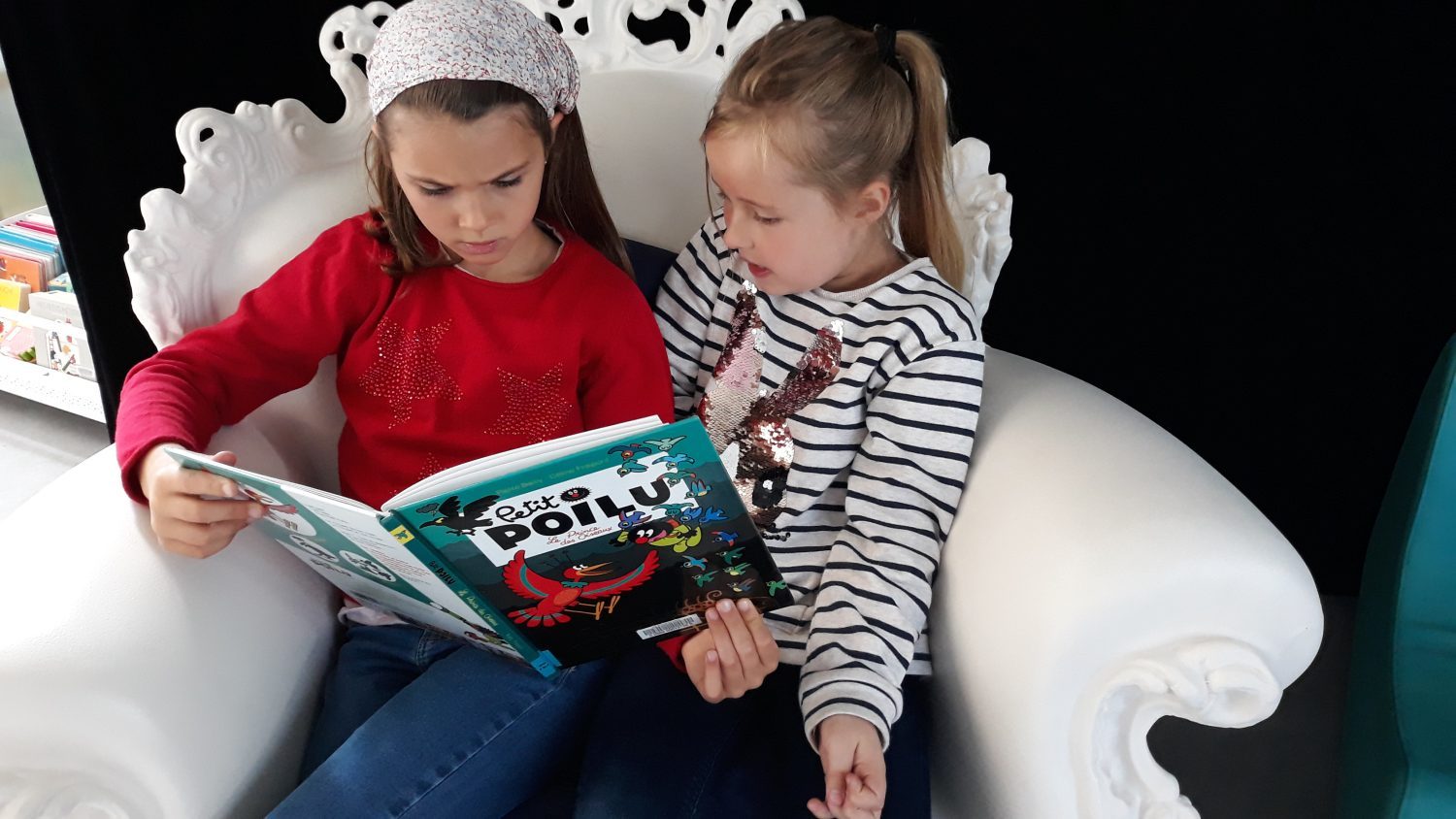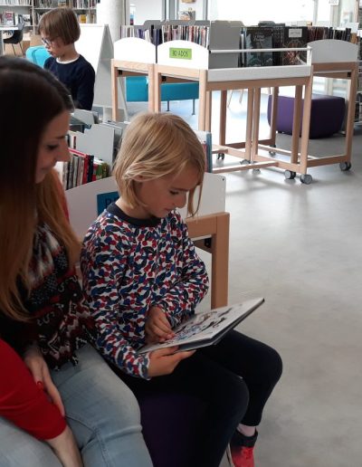 Pour cette dernière séance à la bibliothèque , les enfants ont lire et écouter des histoires, à un, à deux ou à plusieurs.