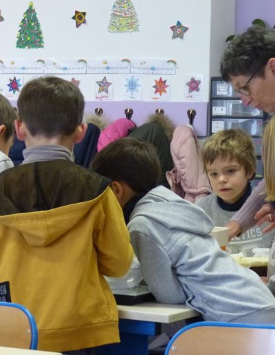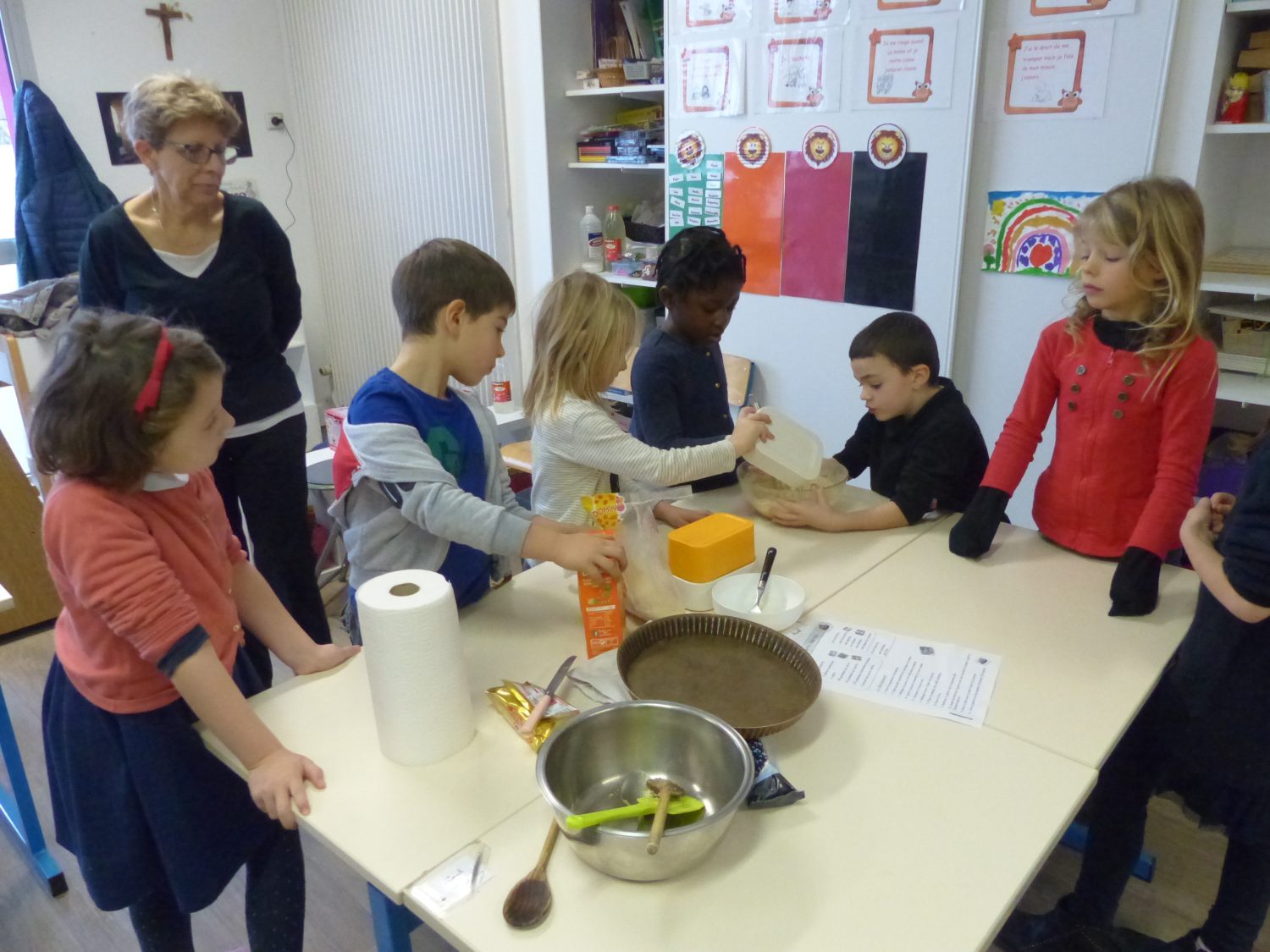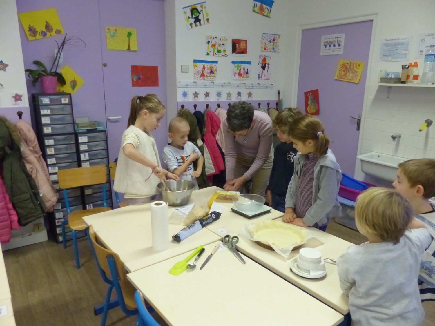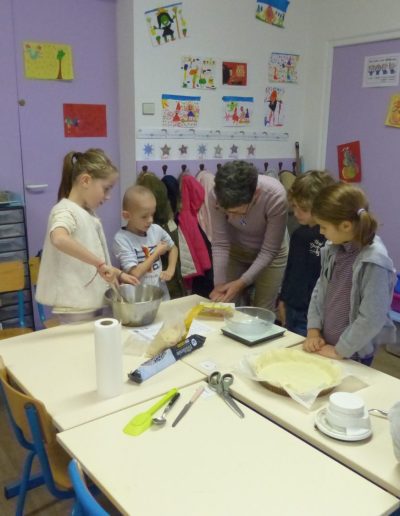 Le 11 janvier nous avons réalisé la galette des rois en classe avec Françoise et Catherine.
