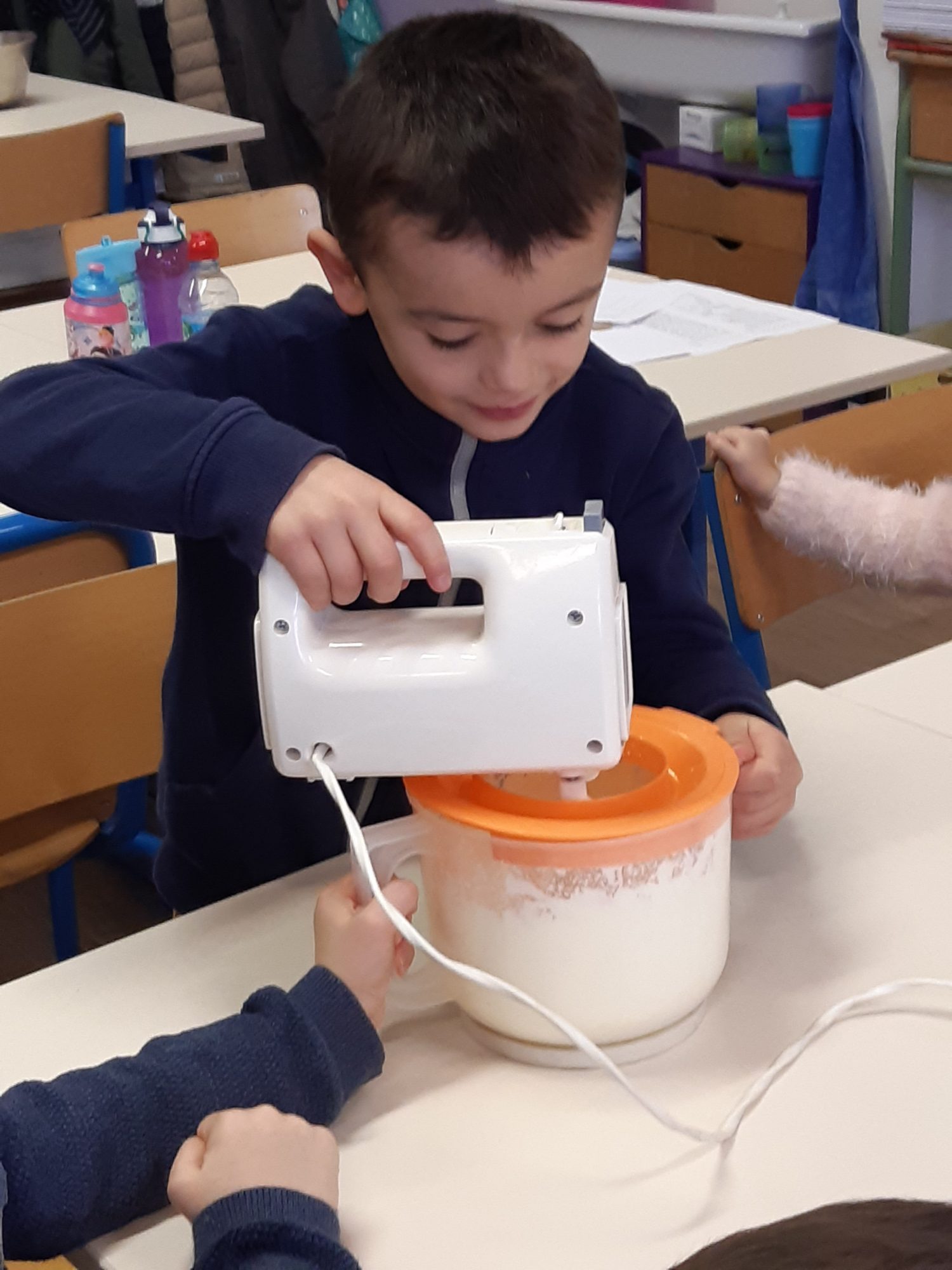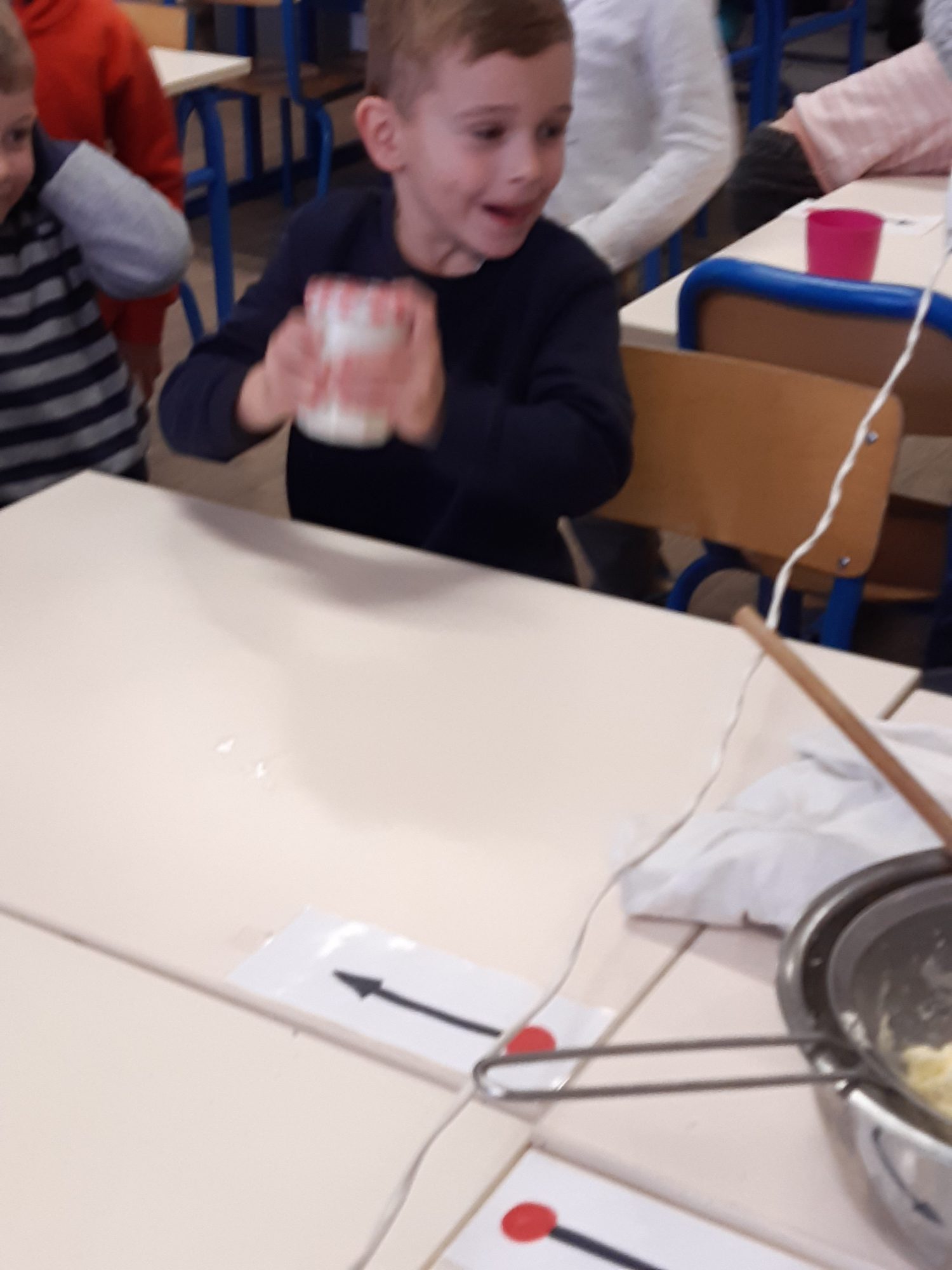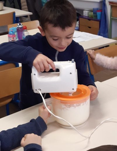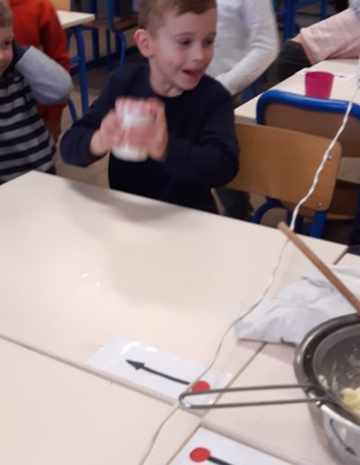 Dans notre classe nous avons fabriqué du beurre à partir de crème, en utilisant un batteur électrique ou en agitant la crème dans un bocal de confiture.