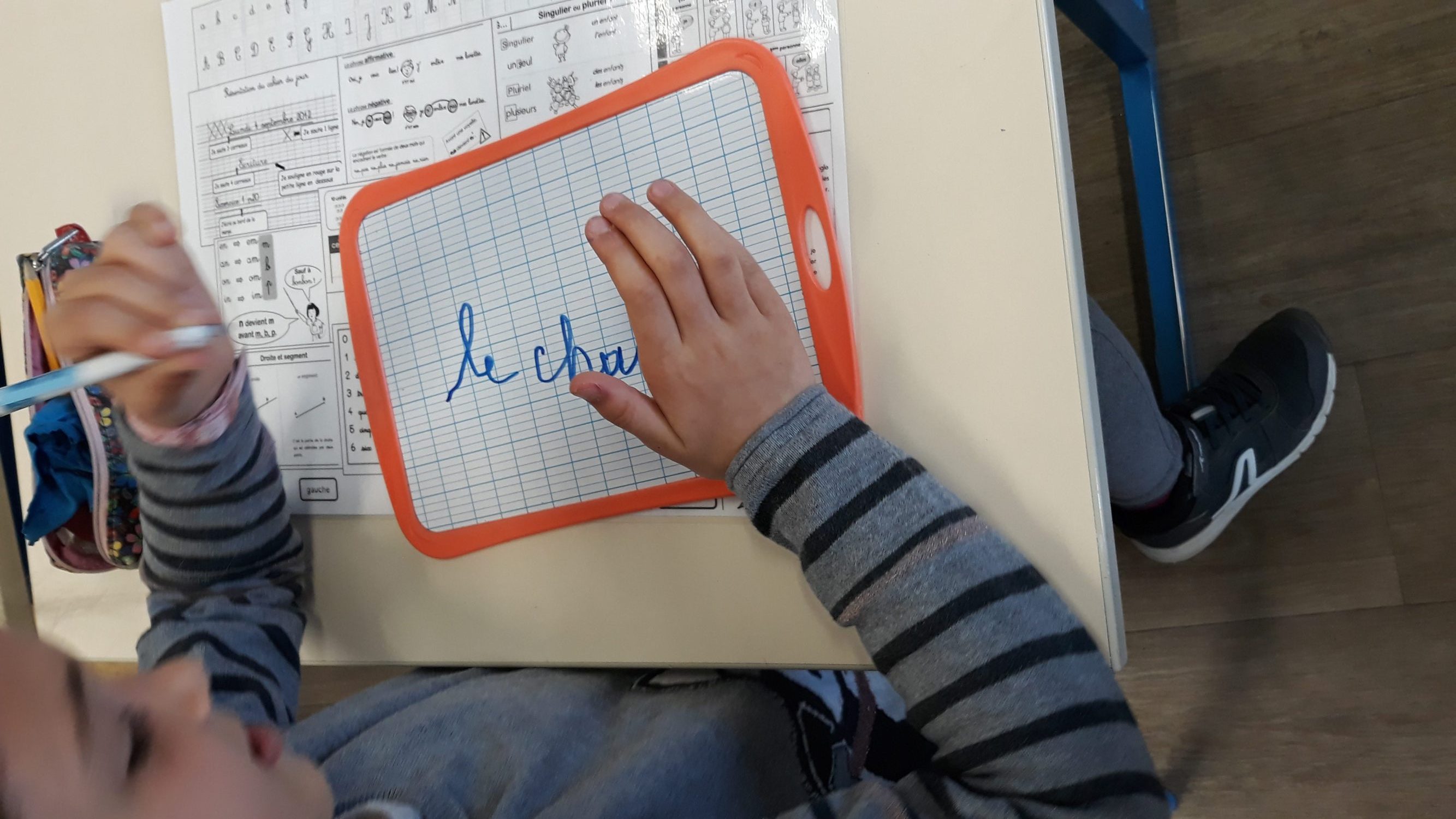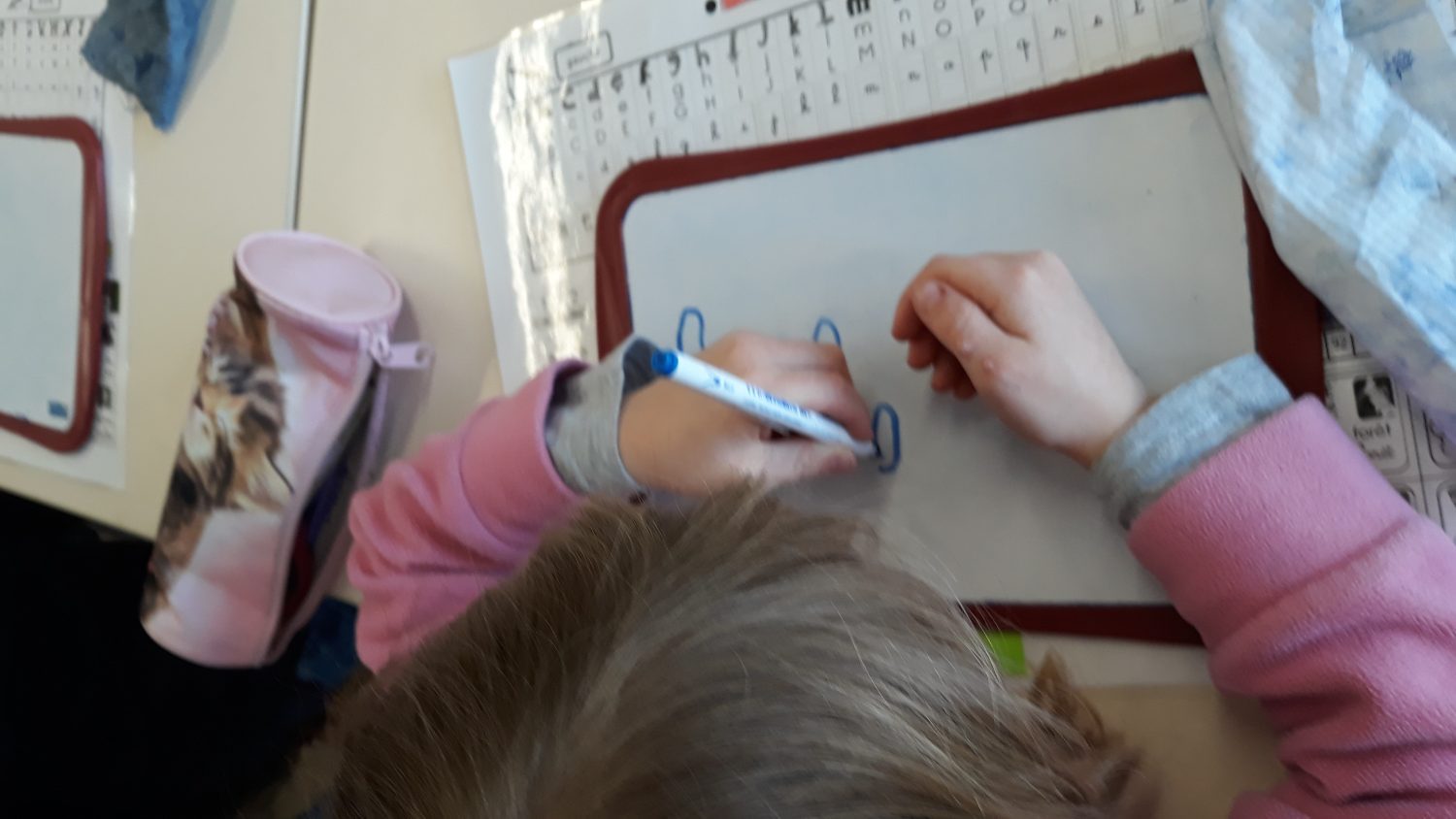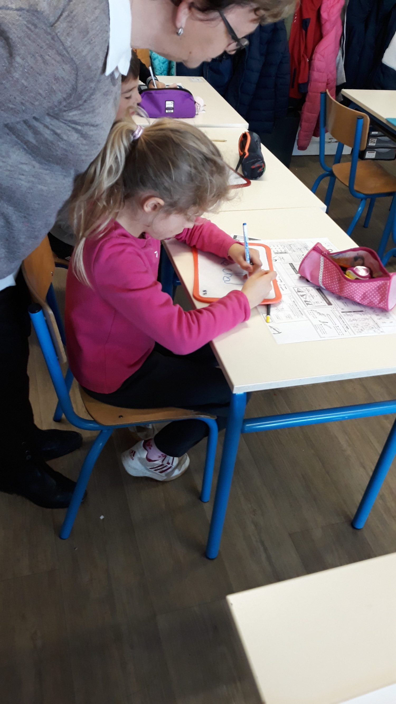 Les enfants ont eu beaucoup de mal à tenir correctement leur crayon! Nous avons continué l’entraînement l’après-midi et avant la récréation je leur ai proposé d’écrire les mots: saumon, truite et poisson d’avril!!!